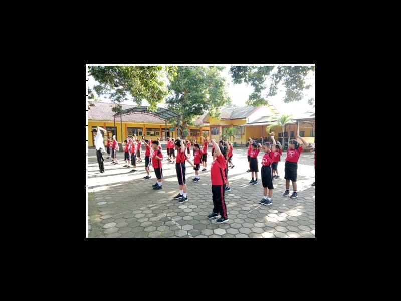 pelajaran pendidikan kesehatan jasmani dan rohani, yang membimbing siswa senam bersama untuk mejaga kesehatan dan jasmani siswa.