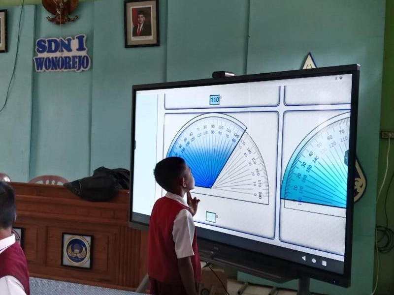 Guru kelas 3 memanfaatkan media pembelajaran yaitu IFP dalam mata pelajaran Matematika dengan mengenal Sudut.